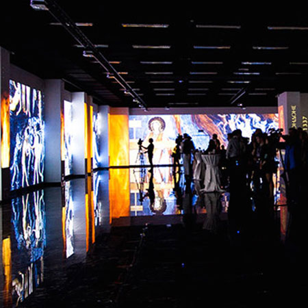 Diese Videomapping-Galerien bieten ausgezeichnete Veranstaltungsorte für jedes Event und wurden bereits in drei Ausstellungen - Renaissance, Avantgarde und Impressionismus - entwickelt und angewendet. Diese einzigartige Serverlösung verfügt über 72 Ausgänge und kann für verschiedene Zwecke in Musikshows, Touren und Events eingesetzt werden.
