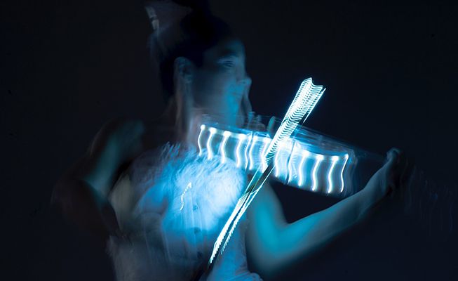 Mischung aus klassischer Ausbildung und elektrischen LED-Auftritten, bringt diese Violinistin Magie und Schönheit auf private oder Firmenveranstaltungen.