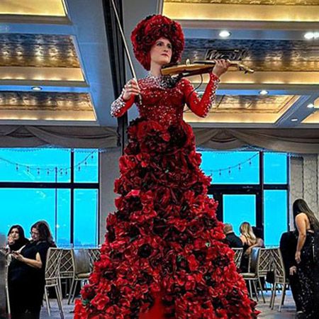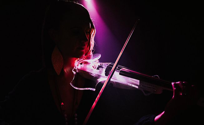 Erhältlich mit der Wahl zwischen einer coolen elektrischen oder LED-Geige, mit der sie mit den Gästen interagieren kann und so ein immersives Erlebnis schafft, das über Musik hinausgeht.