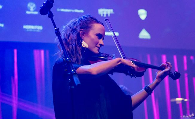 Unsere Geigerin beeindruckt mit ihrer Bühnenpräsenz und den atemberaubenden visuellen Effekten der elektrischen Violine, die zu einer fesselnden und mitreißenden Atmosphäre beitragen.