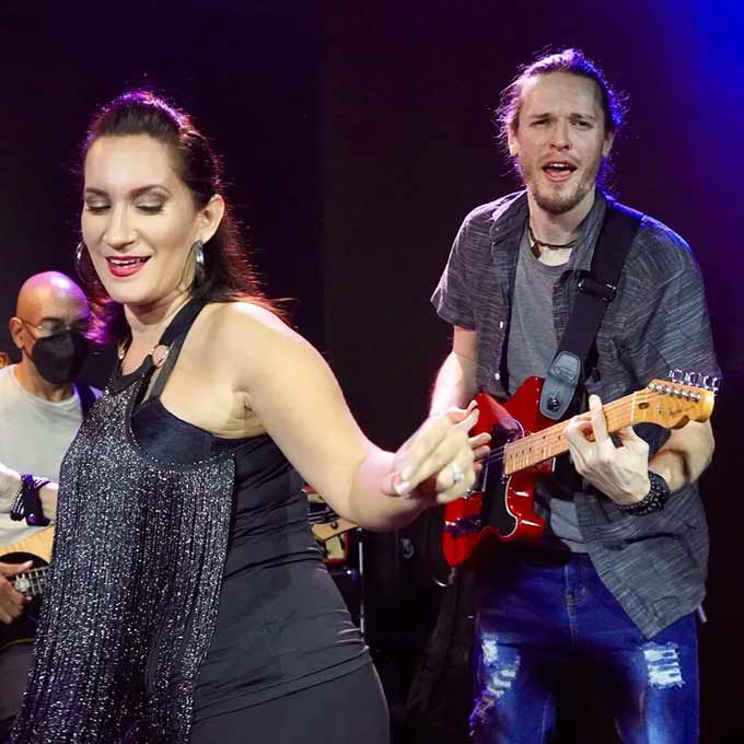 " Diese Band ist großartig! Sie spielen viele verschiedene Genres. Ich liebe all die verschiedenen Instrumente, die sie spielen, und jeder Musiker ist auf seine eigene Art talentiert! Sie kommen zusammen und sorgen für eine großartige Zeit, bei der du garantiert aufstehst und tanzt. Du willst auf jeden Fall sehen, wie sie spielen! 🎶 "