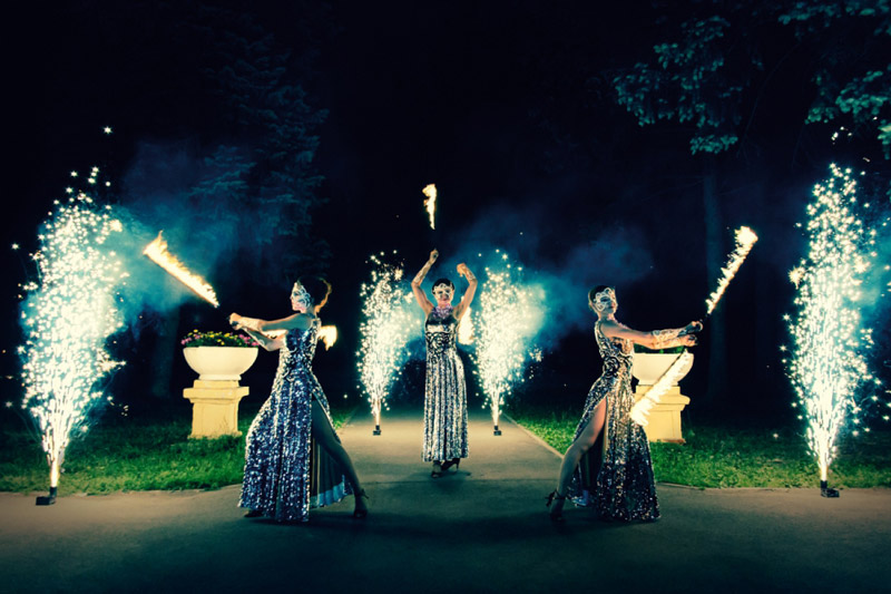 Unsere atemberaubende Feuershow ist der perfekte Höhepunkt der Unterhaltung bei jeder Veranstaltung, Party, Festival oder Hochzeit. Diese beeindruckende Feuerdarbietung wird von unserem gefeierten Team zusammengestellt, das über acht Jahre Erfahrung in der Inszenierung der spektakulärsten Feuer- und Pyrotechnikshows in ganz Russland hat. Unsere faszinierenden Feuerspinner werden mit ihren beeindruckenden Kostümen und ihrer unglaublichen Geschicklichkeit die Aufmerksamkeit des Publikums auf sich ziehen, während sie die flackernden Flammen weben und drehen, um schöne und dramatische Formen zu schaffen.