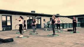 Dieses Ganzkörpertraining ist ein ausgezeichnetes Training für jeden, es verwendet gewichtete Fitness-Hula-Hoops, um die Kernmuskulatur, das Gleichgewicht und die Koordination zu verbessern