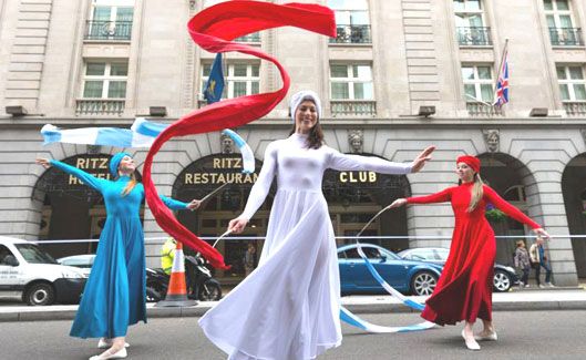 Dies ist eine Flaggen- oder Rot-Weiß-Band-Performance, die zeitgenössischen Tanz und rhythmische Gymnastiktechniken kombiniert, einschließlich Stelzenperformance. Mit einer inspirierenden, spektakulären Partitur können inszenierte Aufführungen an eine Vielzahl von Aufführungsräumen angepasst werden. Alle Kostüme können mit hellen Lichtern ausgestattet werden (sichtbar bei Tageslicht), funktionieren aber auch unbeleuchtet. Diese Tänzer können auch als wandernde Darbietung auftreten, einzeln oder im Einklang, und dabei ihre eigenen Musikboxen tragen, falls gewünscht. Sie haben eine große Sammlung von farbigen Kleidern, die bereits fertig sind und angepasst werden können, um eine Vielzahl von verschiedenen Looks zu kreieren. Farbenfroh und überschwänglich nutzt diese Darbietung den Raum und bringt eine großzügige Portion Farbe und Energie ein.