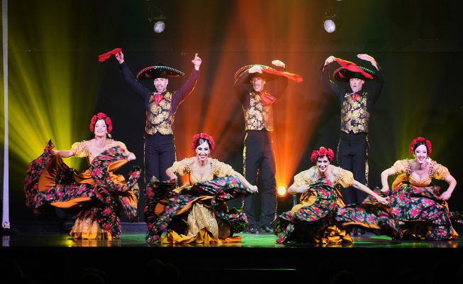 Von Jongleuren über Luftakrobaten bis hin zu wunderschönen Requisiten aus verschiedenen Kontinenten schafft es die Show, sie alle in diese einzigartige Flamenco-Nummer einzubeziehen.