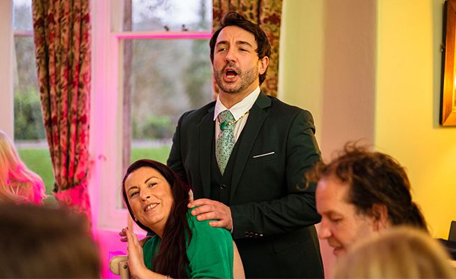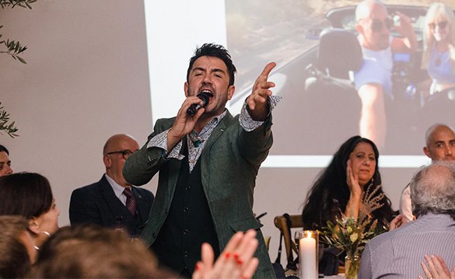Mit seiner fesselnden Bühnenpräsenz und seiner fröhlichen, komödiantischen Moderation wird jede Veranstaltung zu einem wunderbaren Fest.