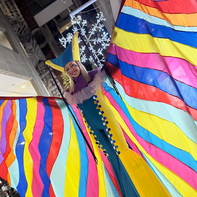 Diese stelzengehenden Künstler in Regenbogenfarben interagieren mit den Gästen, posieren für Fotos und bieten ein interaktives Erlebnis, das Spannung und Neugierde hinzufügt.