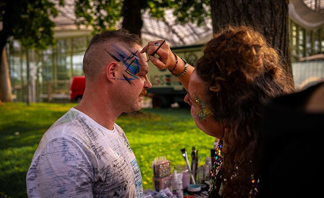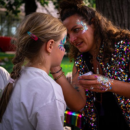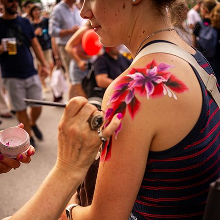 Gesichtsbemalung, Körperkunst und Kinderschminke werden Teil des Unterhaltungsprogramms; ein lustiger, verwandlungsfähiger Moment, der Gäste jeden Alters begeistert.