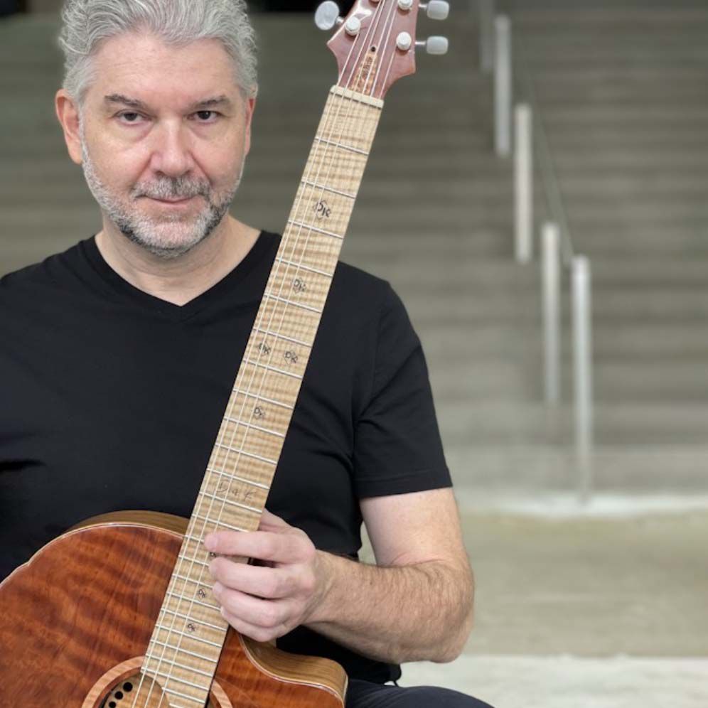 Spielt Nylon- und Jazzgitarre und bietet den Gästen eine Vielzahl von Klängen, Stilen und Grooves.