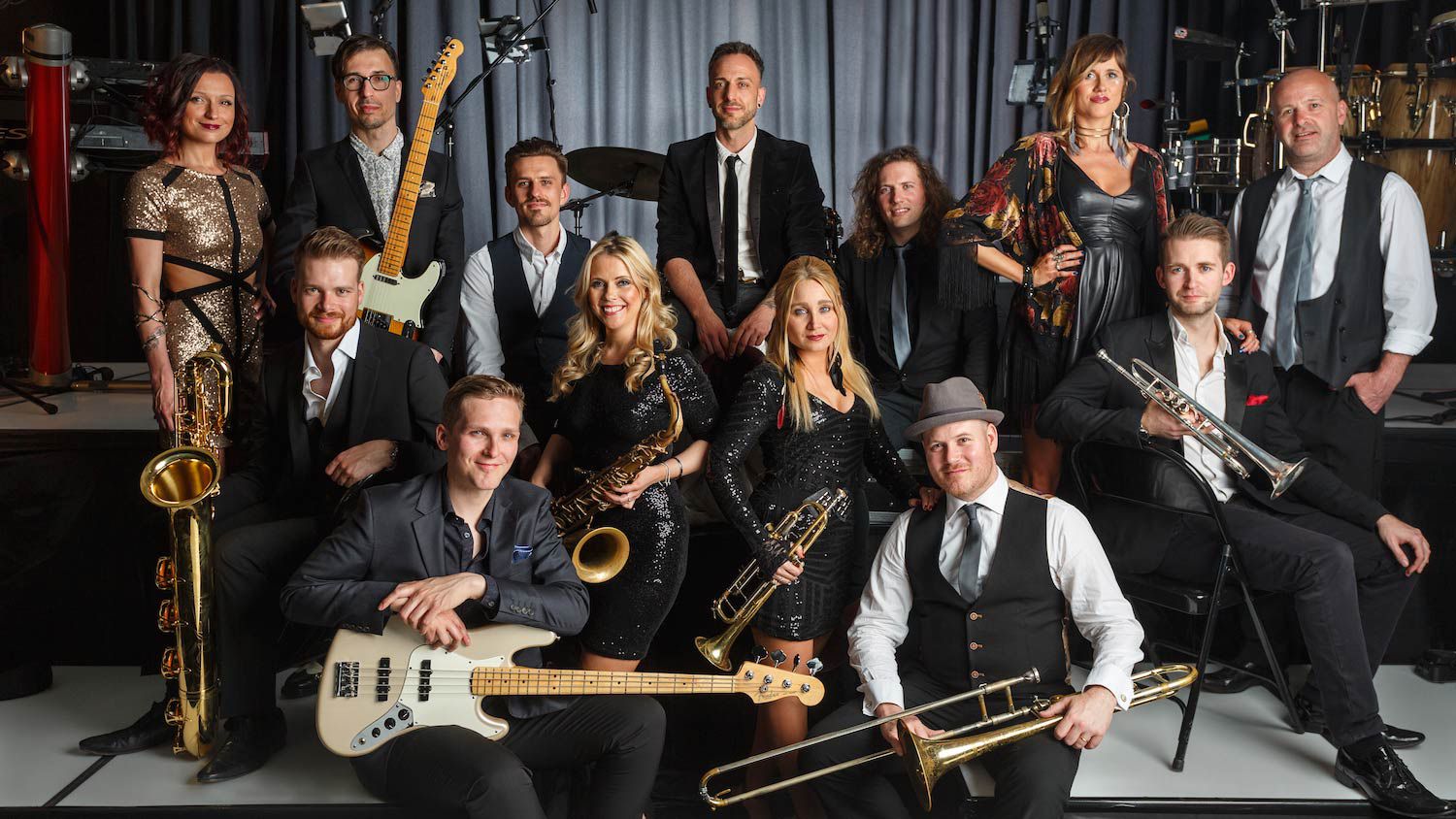 Die Band ist in verschiedenen Größen erhältlich, um Ihnen, Ihrer Veranstaltung und Ihrem Budget gerecht zu werden. Sie arbeiten als 13-köpfige Band bis hin zu einer dreiköpfigen Party-Band und einem Akustik-Duo. Ihre Besetzungen sind sehr flexibel, ebenso wie ihr ständig wachsendes und beeindruckendes Repertoire. Sie spielen moderne Pop- und Rock-Songs, Klassiker der 90er bis 50er Jahre, Balladen, Swing und vieles mehr.