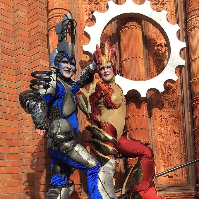 Erstaunliche Stelzenläufer mit einer großen Auswahl an interessanten und innovativen Kostümen. Beliebt bei Messen, Ausstellungen und Firmenveranstaltungen.