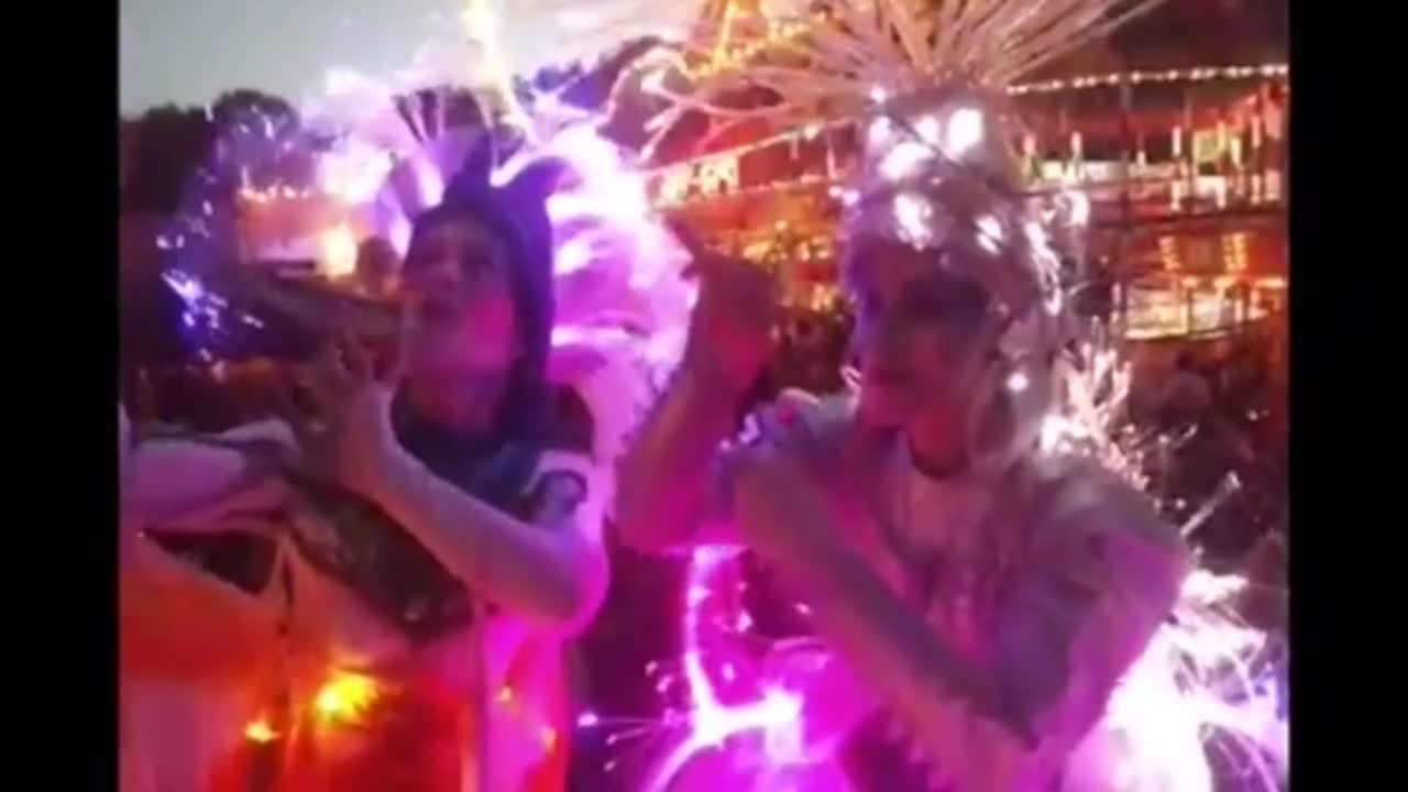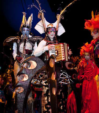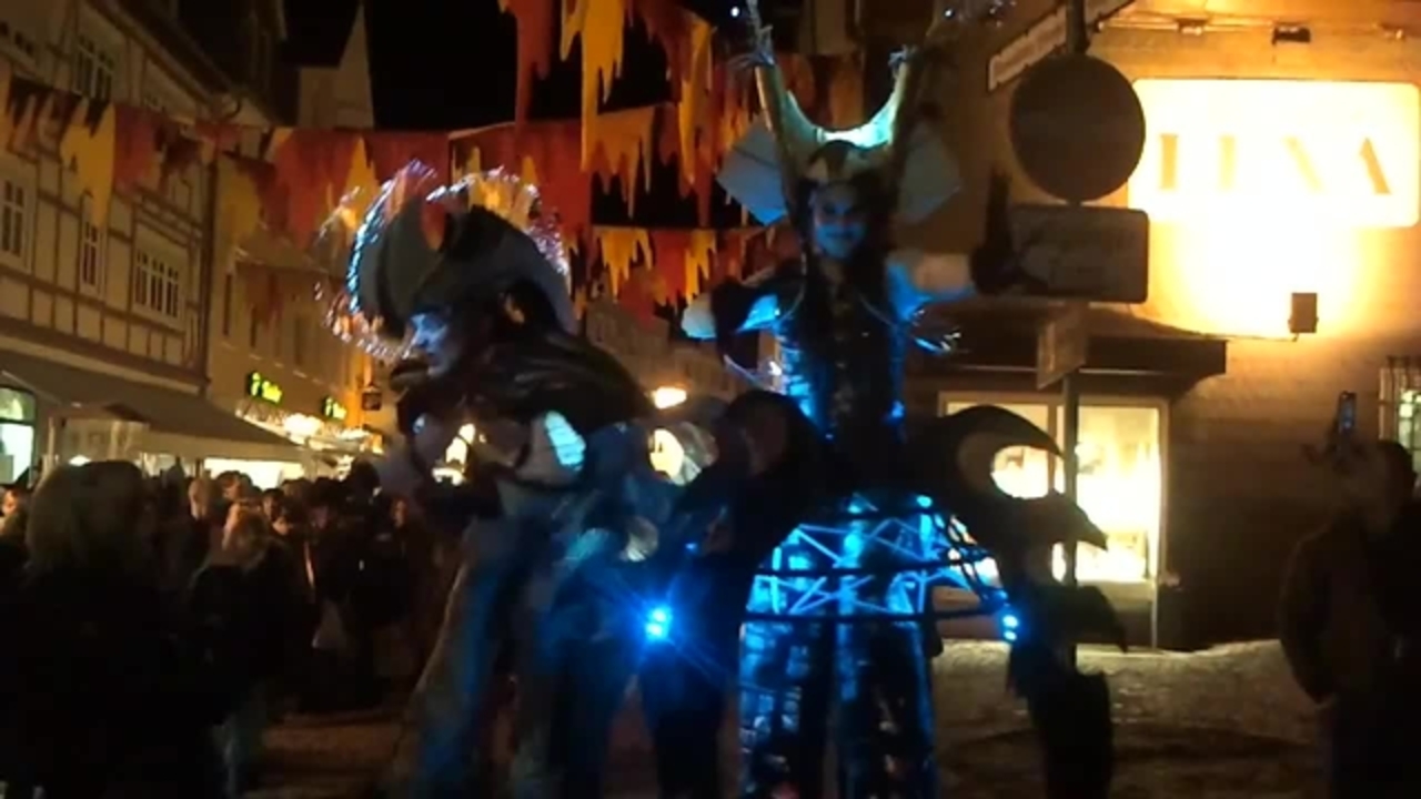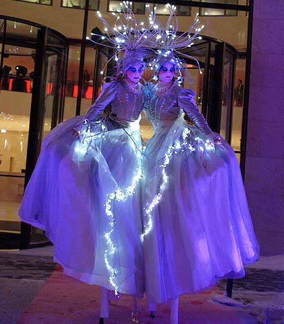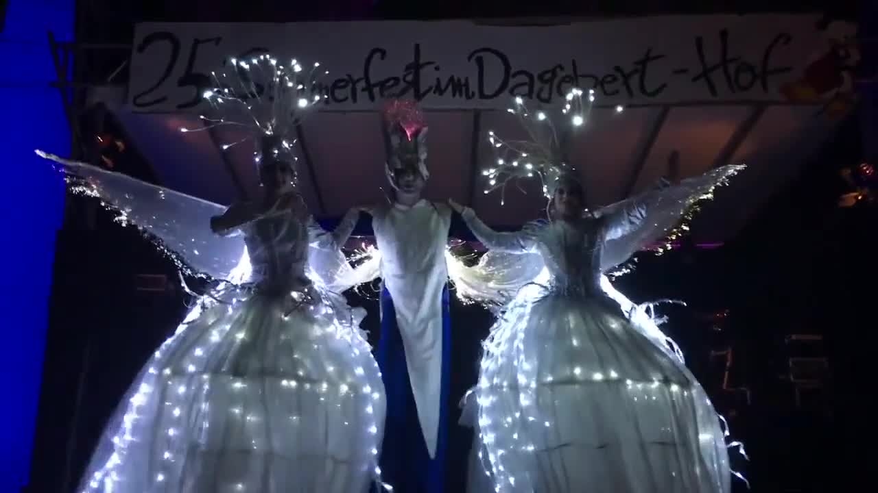 Innovative kostümierte Stelzenläufer, die leuchten können