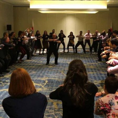 Dieser Haka-Workshop ist vollständig anpassbar an jedes Firmenevent, geeignet für Publikum jeder Größe und kann drinnen oder draußen stattfinden.