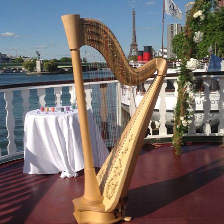 Seit über 20 Jahren unterhält diese professionelle Harfenistin aus Paris Gäste bei renommierten Veranstaltungen in ganz Frankreich.