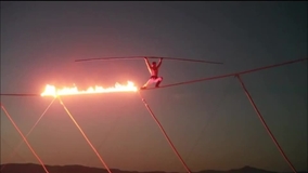 Wenn Sie nach einer atemberaubenden Performance suchen, werden Sie nichts Heißeres finden als unsere "Feuerdraht"-Darbietung des Hochseilakrobaten. Dies ist eine brandneue Vorstellung, die zum ersten Mal auf dem Burning Man Festival gezeigt wird. Eine spektakuläre und wirklich erstaunliche Darbietung, dies ist eine brandneue Variante seiner bereits beeindruckenden "Himmelsgang"-Darbietung.