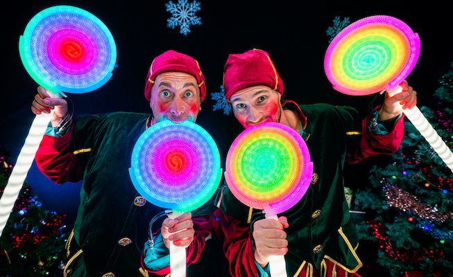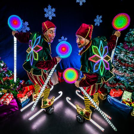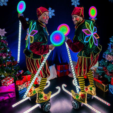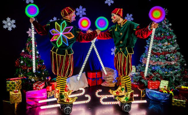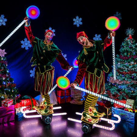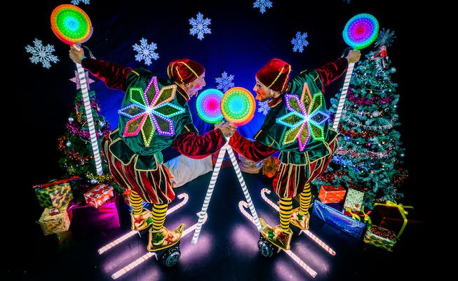 Diese Streifzüge der Elfen "skaten" auf Hoverboards in LED-Kostümen mit übergroßen Lolli-Skipfosten und machen sie zu einer festlichen und unverzichtbaren Attraktion.