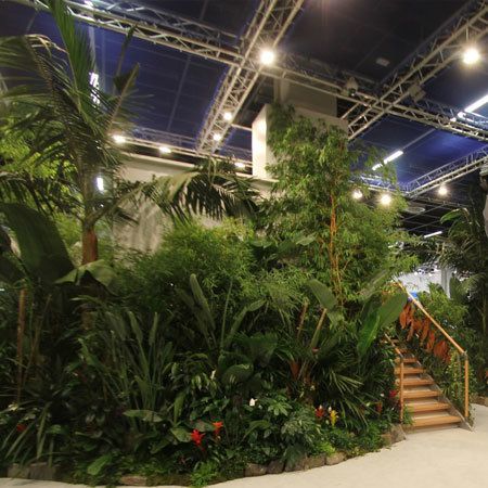 Diese innovativen Floraldesigner können auch Accessoires wie riesige Vasen, Springbrunnen und künstliche Landschaften bereitstellen.