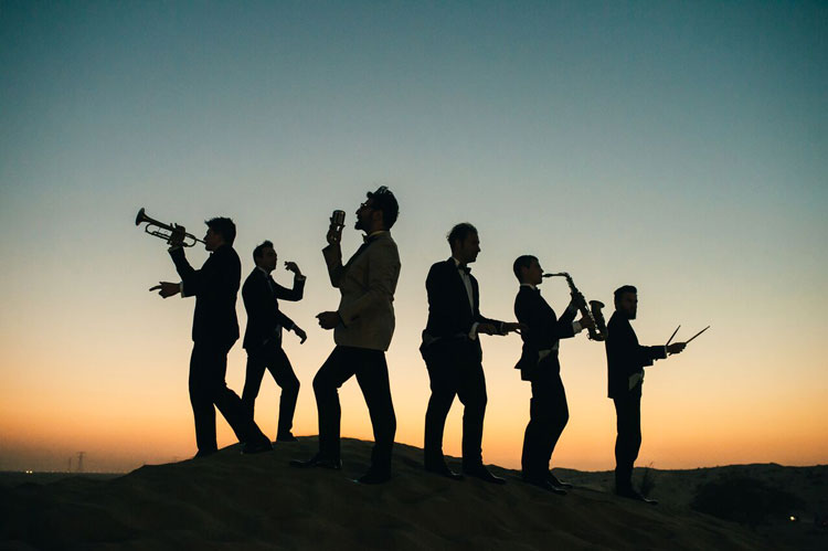 Unsere italienische Swing-Jazz-Band UAE ist die ultimative Dubai Swing-Band für jede Veranstaltung, bei der die Gäste aufstehen und tanzen möchten. Diese vielseitigen Musiker und Sänger werden jede Gelegenheit mit ihren scharfen Klängen, warmen und vielseitigen Stimmen und leidenschaftlichen Darbietungen beleben. Eine Swing-Band, die schnell die Herzen des Publikums in Dubai erobert hat und zwei Jahre in Folge zur offiziellen Band der Dubai Boat Show wurde, sowie bei der F1 Grand Prix auftrat und an der Campari-Tour teilnahm, die an einigen der wohlhabendsten Orte in Dubai stattfand.