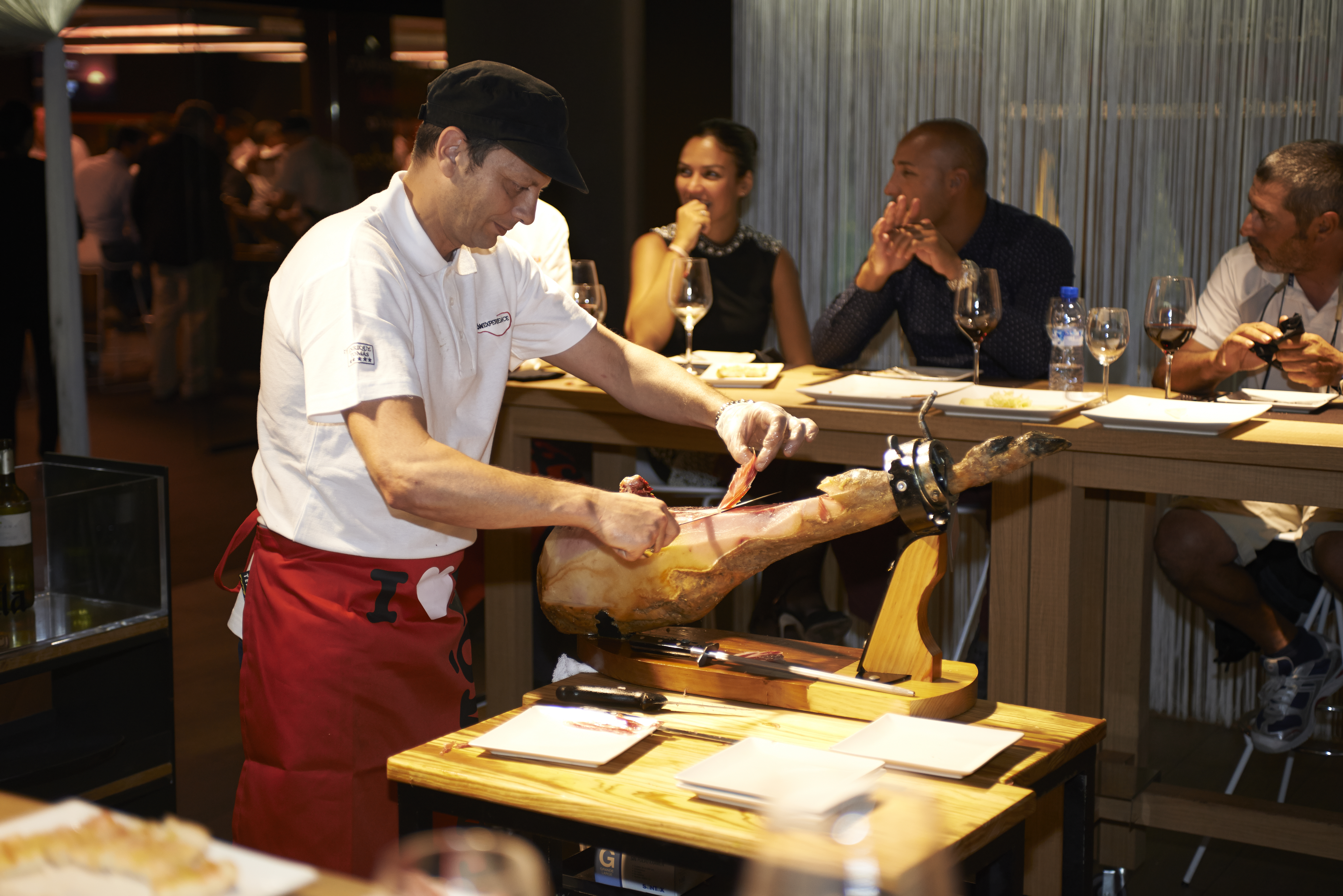 Unsere exklusive Jamon Tour & Verkostung bietet eine einzigartige Erfahrung für Ihre VIP-Gruppe. Mit den besten Zutaten bereitet unser erfahrener Koch Ihnen eine Vorführung der spanischen Kunst des Schneidens vor, bevor Sie authentischen Schinken genießen. Dies ist die perfekte Option für Firmenausflüge, Incentive-Reisen, unterhaltsame Firmenveranstaltungen und Team Building Aktivitäten in Barcelona.