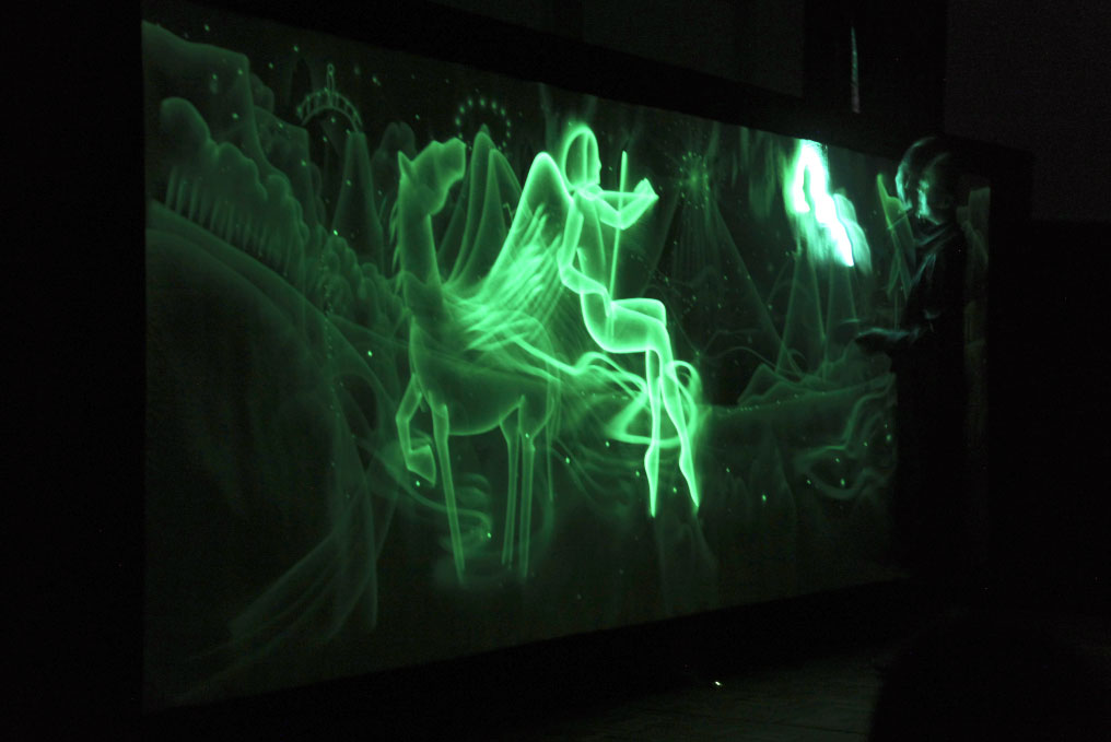 Die Dauer der Light Painting-Aufführung variiert je nach Größe des Raums und der Veranstaltung selbst, beträgt jedoch normalerweise 5-20 Minuten. Damit das Light Painting effektiv betrachtet werden kann, müssen alle Lichter im Raum ausgeschaltet sein.
