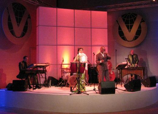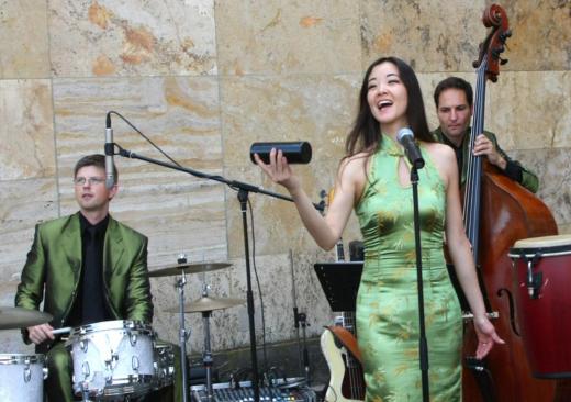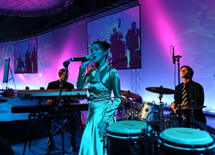 Jazzband mit weiblichem Gesang, die moderne Lounge- und Bossa Nova-Stücke spielt