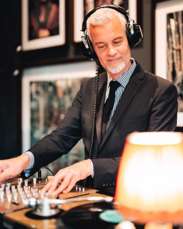 Dieser Vinyl-DJ bietet ein authentisches Jazzerlebnis und entführt das Publikum in die goldene Ära der dekadenten New Yorker und Pariser Nachtclubs