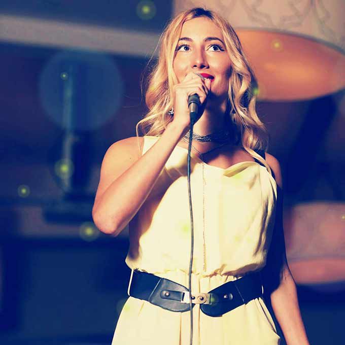 Unsere außergewöhnliche Sängerin wird Ihre Gäste bei besonderen Anlässen verzaubern, während sie Lieder in mehreren Sprachen und Stilen singt.