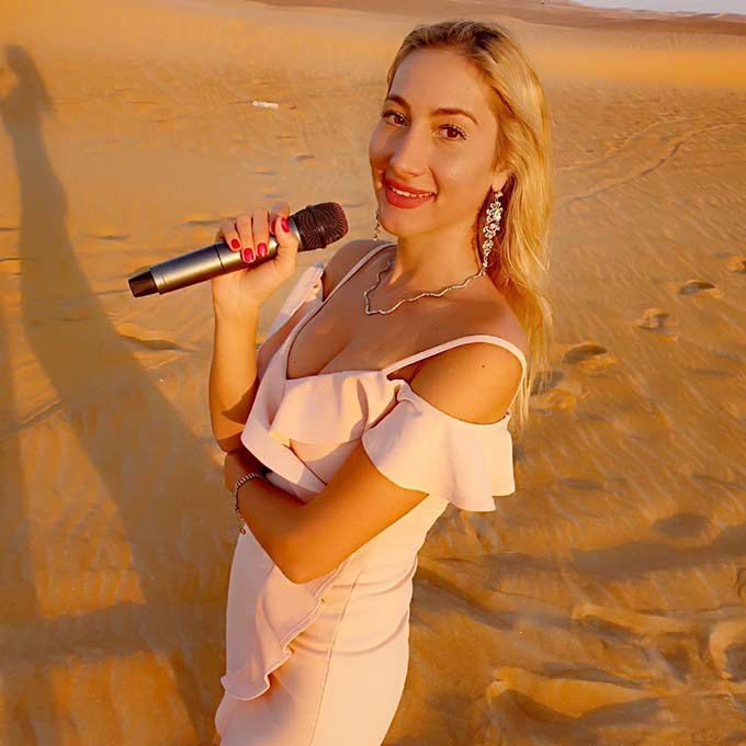 Unsere internationale Sängerin hat ihren Sitz in Abu Dhabi, VAE, und steht für besondere Anlässe im gesamten Nahen Osten zur Verfügung.