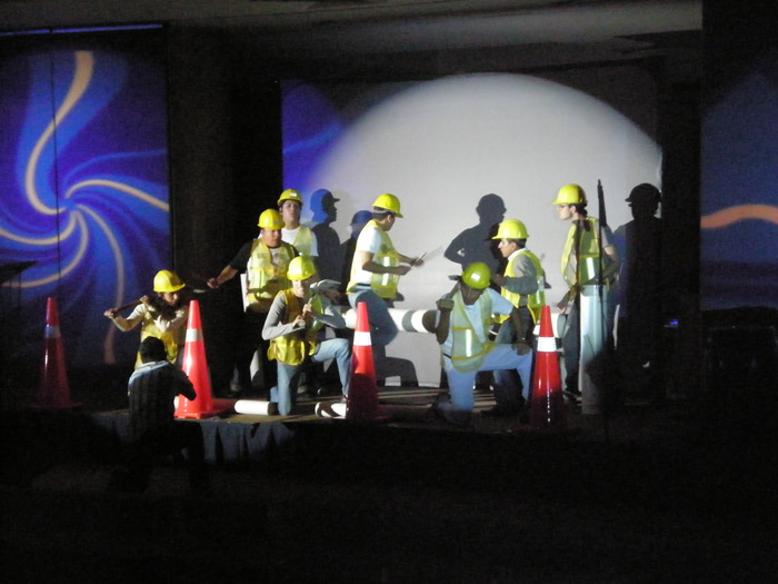 Shows sind mit Wassertrommeln und jedem beliebigen "Junk"-Objekt verfügbar, das der Kunde verwenden möchte.