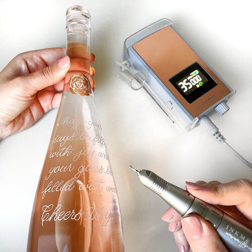 Sie können eine spezielle Nachricht zu Wein- oder Spirituosenflaschen, Schönheitsprodukten hinzufügen - dies kann vor Ort oder in ihrem Studio für Marketingzwecke für Geschenksets erfolgen.