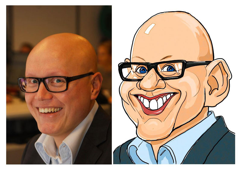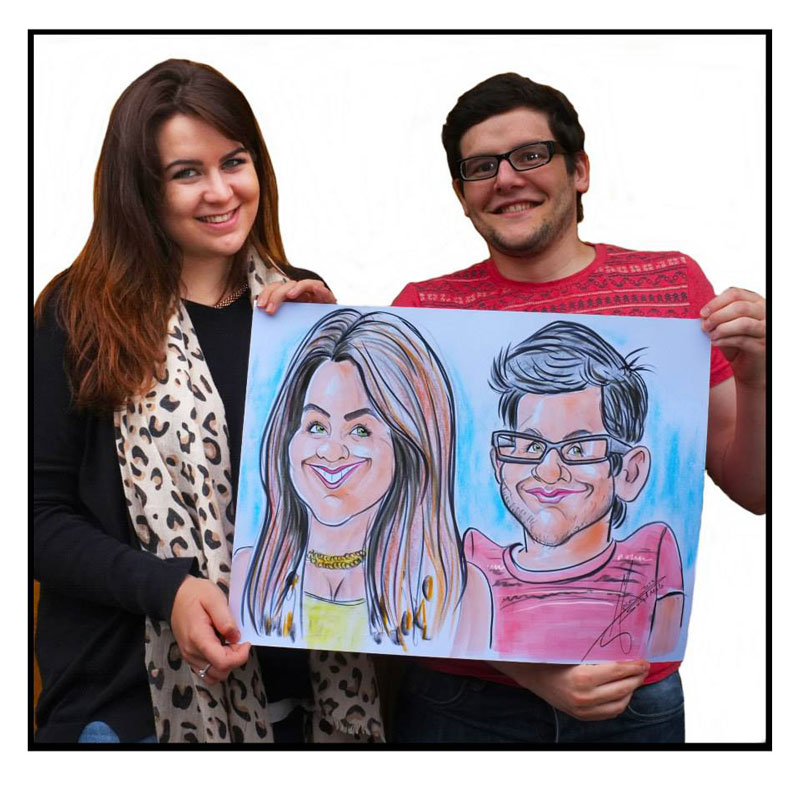 Unser professioneller Karikaturist beherrscht das Zeichnen von Live-Karikaturen in Schwarz-Weiß, Farbe oder digital.