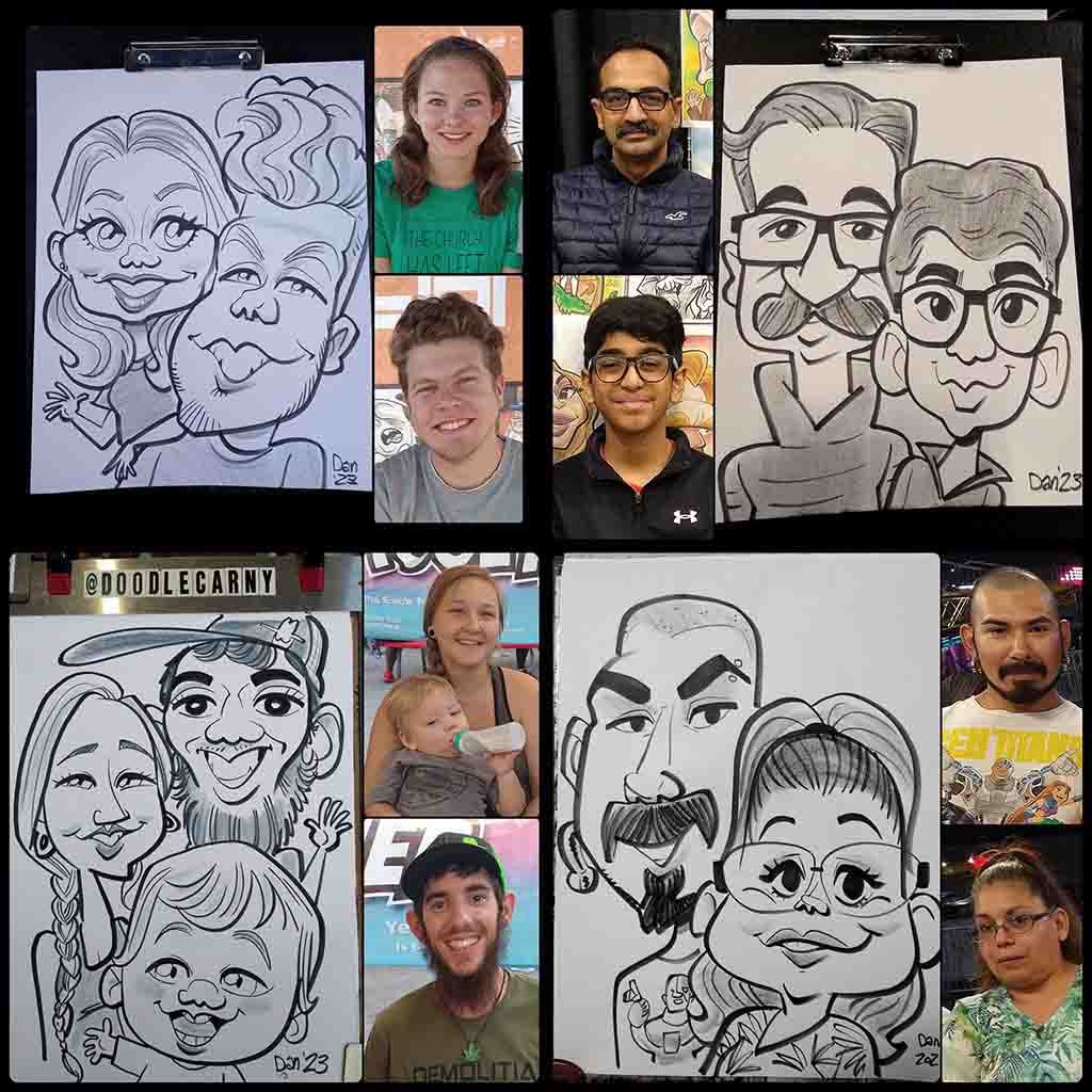 Unser Karikaturist ist sehr beliebt auf Messeständen, Firmenveranstaltungen, Messen, privaten Partys und Hochzeiten.