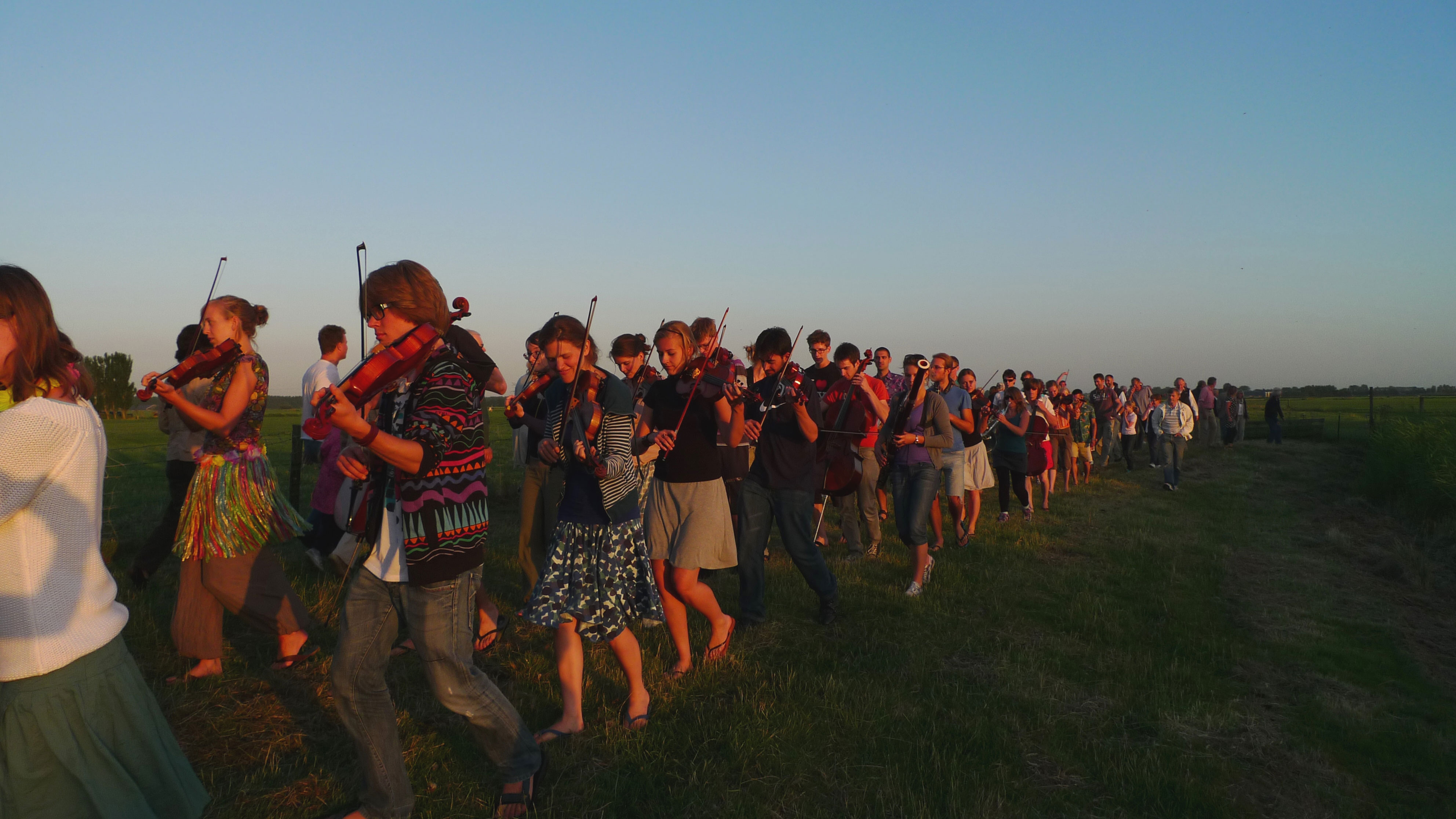 In einer unkonventionellen Haltung nehmen sie kein traditionelles Podium ein, sondern können überall auftreten, sei es in kleinen Räumen, auf einem Kahn, auf offenen Feldern oder an Stränden. Sie streben nach direkter Interaktion mit ihrem Publikum, um ein intensives musikalisches Erlebnis für alle zu schaffen.