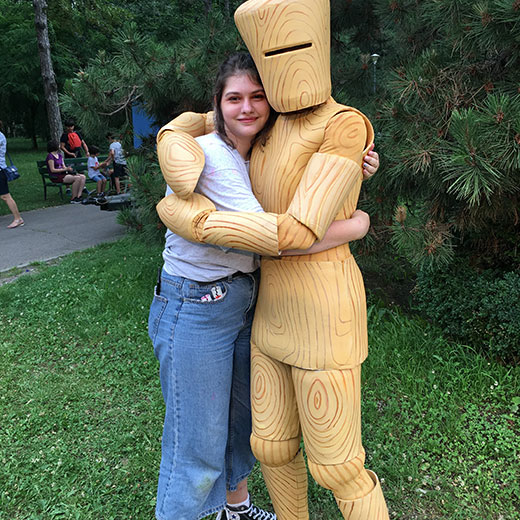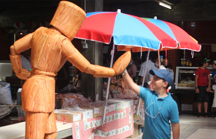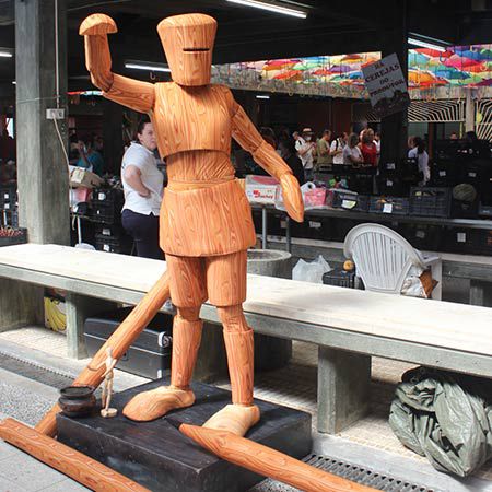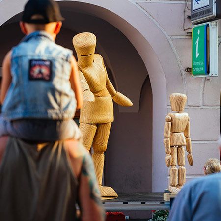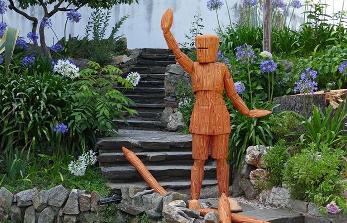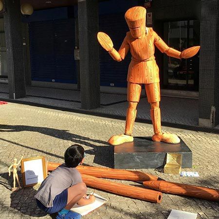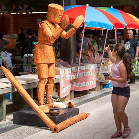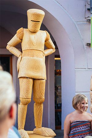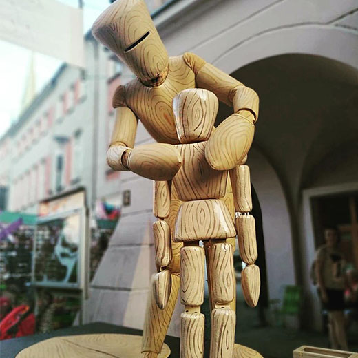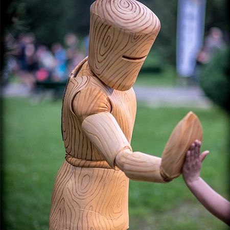 Eine charmante lebende Statue-Option, bei der hölzerne Figuren zum Leben erweckt werden