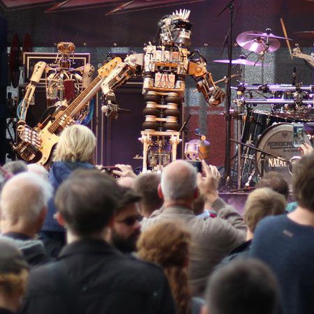 Bestehend aus einer Rockband-Besetzung spielt jeder Roboter ein Instrument mit erstaunlicher Geschicklichkeit. Es ist ein wirklich einzigartiges Spektakel, das man nicht verpassen sollte.