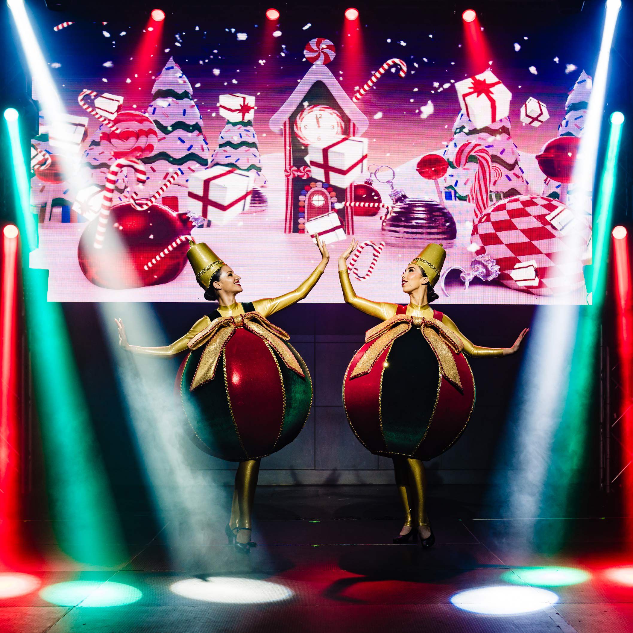 Verfügbar zur Buchung als eigenständige Darbietung oder als Teil eines größeren Weihnachtspakets mit lebenden Geschenken, Lebkuchenfiguren, Elfen und mehr!