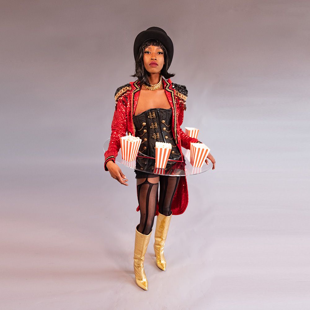 Mieten Sie unsere Hostessen in Canapé-Röcken, um Ihren Gästen auf glamouröseste Weise Erfrischungen anzubieten.