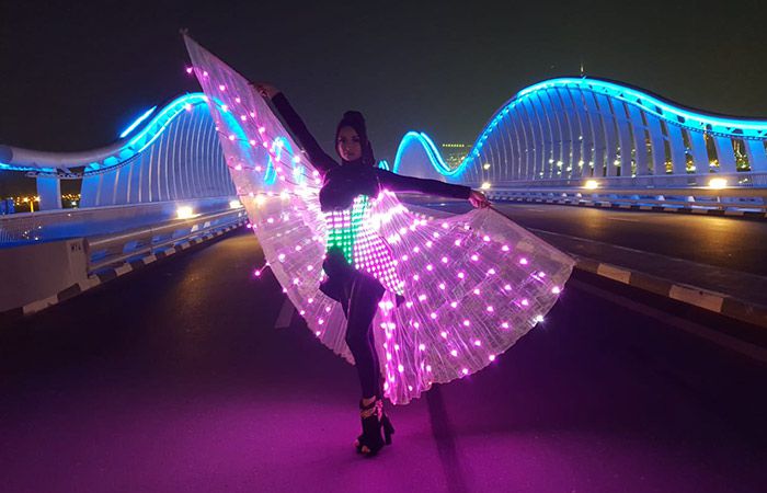 Diese talentierte Gruppe von Künstlern hat bereits Partys in Dubai und in verschiedenen Ländern wie der Türkei, dem Libanon und Katar aufgehellt, um nur einige zu nennen. Zwei bis vier weibliche Lichttänzerinnen können ihre wunderschönen Federkostüme, ihr Talent und ihre Energie zu Ihrer Party oder großen Feier mitbringen und ihr etwas wirklich Besonderes und Einzigartiges verleihen.