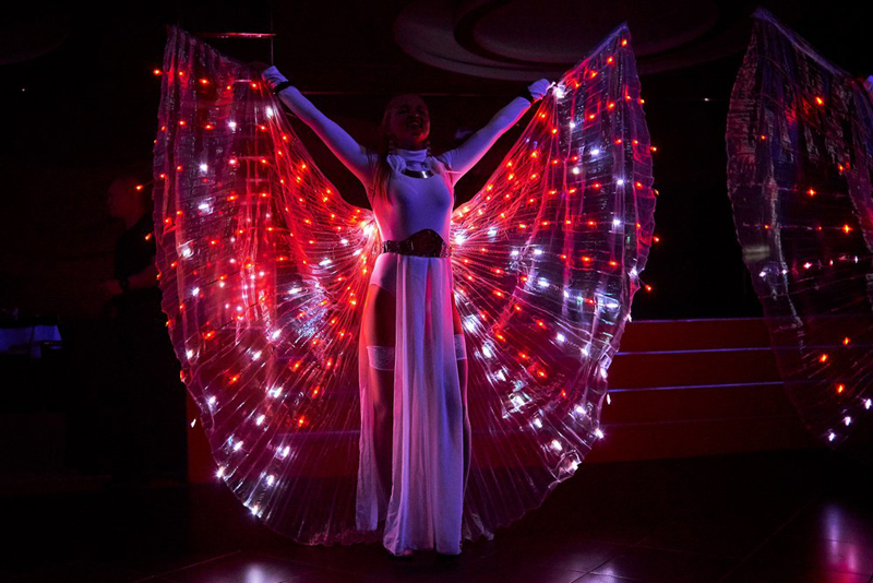 Gekleidet in wunderschöne Federkostüme werden unsere LED-geflügelten Tänzerinnen eine Show darbieten, die Ihre Party nicht nur mit ihren leuchtenden Flügeln, sondern auch mit ihrem