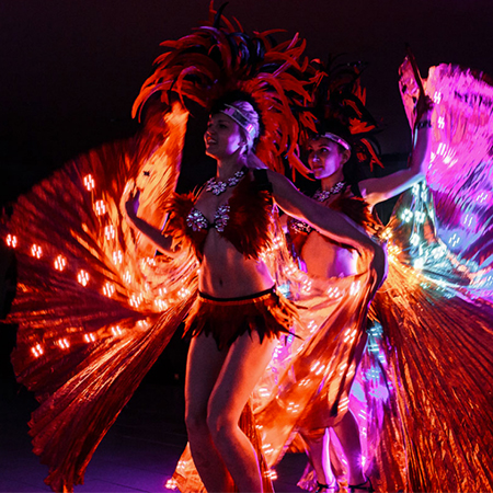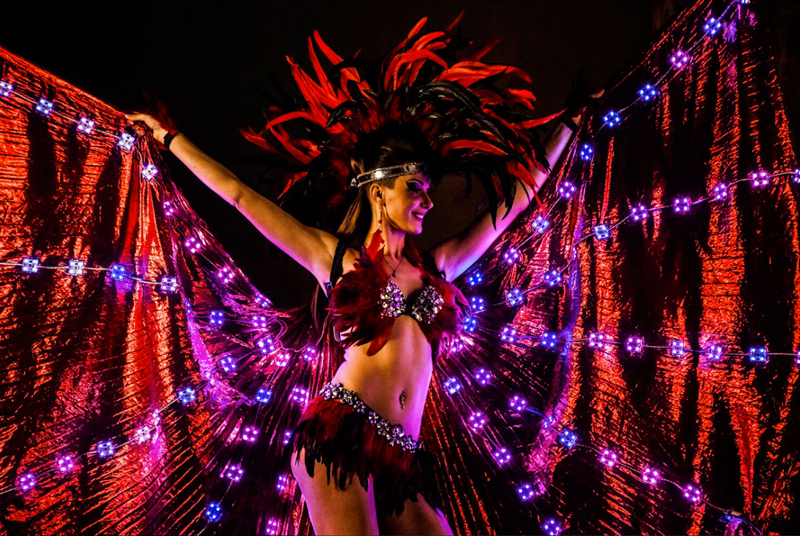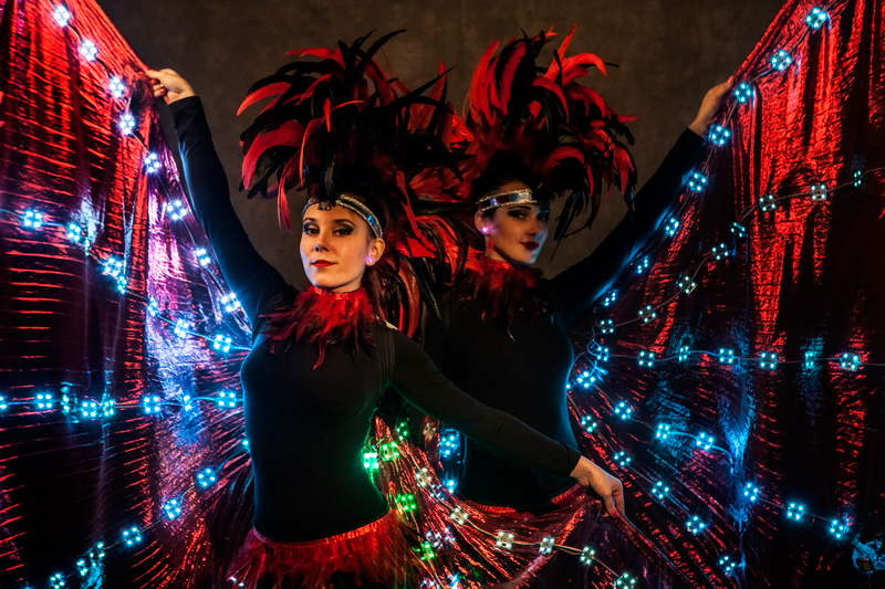 Mit bis zu vier weiblichen Lichtkünstlerinnen, die für Buchungen verfügbar sind, kann diese vom Karneval inspirierte Darbietung musikalisch angepasst werden. Unsere LED-geflügelten Tänzerinnen können ihre Choreografien auf Wunsch an jeden brasilianischen oder Samba-Song anpassen. Auf diese Weise ist diese Lichttanzshow garantiert, unterschiedliche Geschmäcker zu befriedigen und eine breitere Palette von Veranstaltungen zu bedienen.