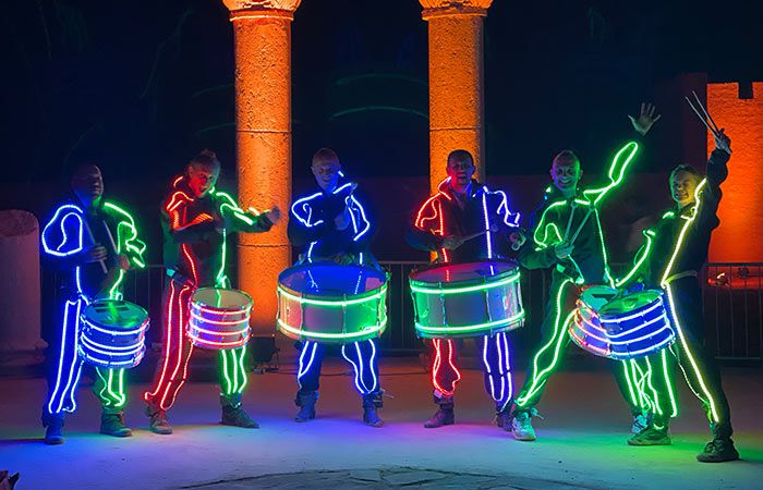 Mischen Sie moderne LED-Effekte mit kraftvollem Schlagzeug und einer beeindruckenden, in Dubai ansässigen Lufttrommelshow.