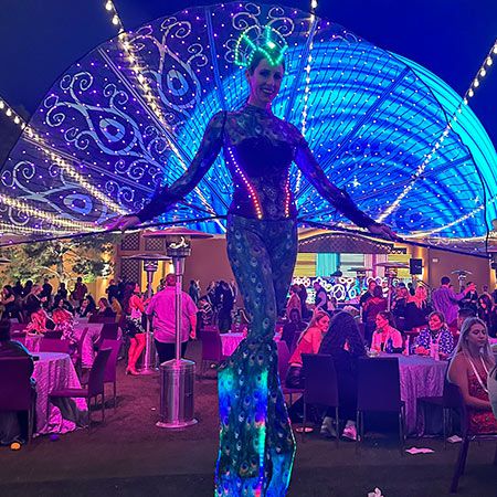 Unsere auffälligen Stelzenläufer sind die ideale Mischung und Mingle-Act, um zeitgenössischen Luxus auf Festivals, thematischen Veranstaltungen und schicken privaten Partys zu bringen.
