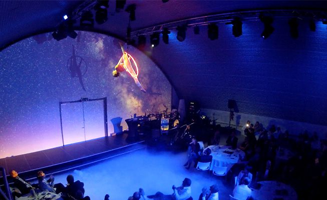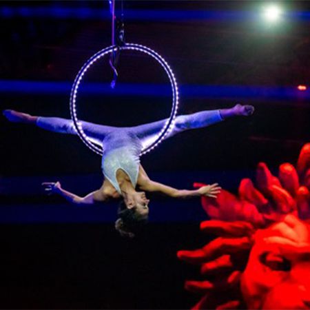 Unsere talentierte Luftakrobatik-Tänzerin verbindet nahtlos moderne Lichttechnologie mit der Eleganz und Dynamik der Luftakrobatik.