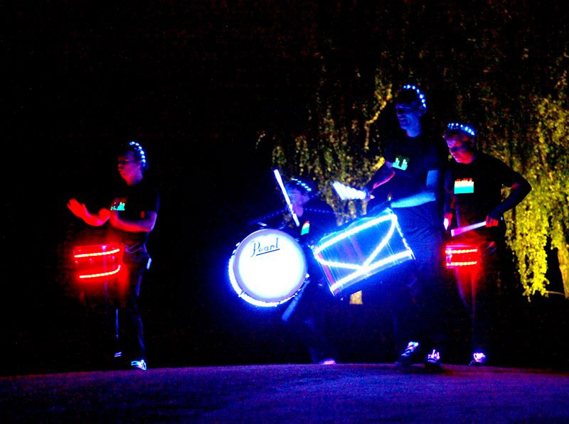 Diese einzigartige LED-Show bietet eine dynamische Fusion aus kraftvollem elektronischem Schlagzeug und High-Tech-Lichtperformance, während dieses LED-Jonglier- und Trommel-Duo zusammenarbeitet, um eine Performance zu schaffen, die eine Augen- und Ohrenweide ist. Aufregend und innovativ, kombinieren sich mehrfarbige beleuchtete Jonglierkeulen und Trommeln zu einer visuell beeindruckenden Show, die Sie auch zum Tanzen bringen wird! Indem sie die Atmosphäre europäischer Nachtclubs nachahmen, bieten dieses Duo eine Vielzahl von verschiedenen Shows, die für verschiedene Veranstaltungen geeignet sind, von privaten Partys und Clubnächten bis hin zu Firmenveranstaltungen und Eröffnungs- und Abschlussfeiern. Die beleuchteten Jonglierkeulen und leuchtenden Trommeln sind vollständig programmierbar; Kunden können die Farben und Lichteffekte anpassen, während sie im Takt der Musik pulsieren.