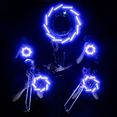 Blasen Sie Ihre Gäste mit unserer spektakulären LED-Drums & Brass Troupe um, bestehend aus Posaunen, Sousaphon und einer 7-köpfigen Drumline