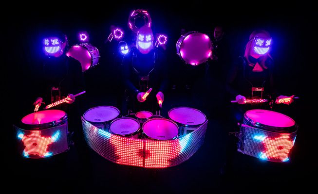 Unsere LED Drum & Brass Truppe hat das Publikum auf Glastonbury unterhalten und hatte mehrere TV-Auftritte, bei denen sie ihr Talent präsentiert haben.