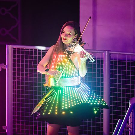 Die Kombination von Musik und visuellen Elementen für ein kraftvolles, immersives Erlebnis: Diese Geigerin präsentiert eine atemberaubende LED-Geigenshow mit über 1.500 Lichtern.