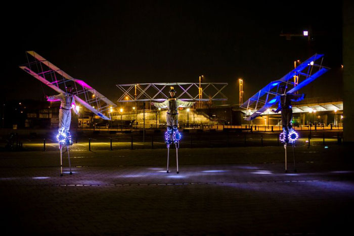 Eine wirklich visuelle Form der LED-Unterhaltung, die herumwandernden Zirkusartisten werden Outdoor-Festivals beleuchten, bei flugthemenorientierten Firmenveranstaltungen begeistern und in Einkaufszentren für Aufsehen sorgen.