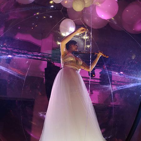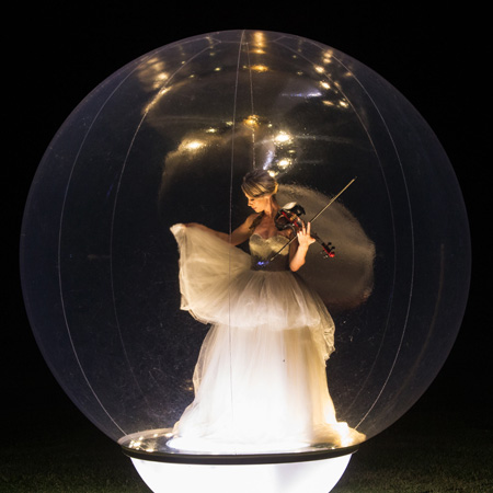 Die Möglichkeiten mit dieser Live-Musik-Kugel sind endlos. Setzen Sie Ihren DJ in eine riesige leuchtende Kugel und heben Sie Ihren Nachtclub oder Ihre Party auf die nächste Stufe oder fügen Sie einen klassischen Sänger oder einen elektrischen Geiger in die Kugel ein und präsentieren Sie eine elegante und bezaubernde Show. Dieses fantastische Musik-Entertainment bietet Optionen wie Sänger, Geiger, Perkussionisten, Saxophonisten und eine Vielzahl von visuellen Themen oder wählen Sie Ihren eigenen Musiker und gestalten Sie eine einzigartige und faszinierende Bühnenshow.