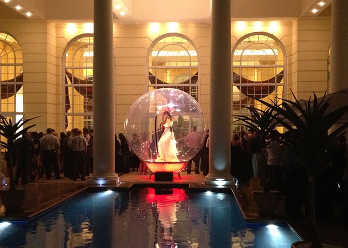 Kontaktieren Sie unser Team, um diese unglaubliche Performance-Kugel zu buchen, und warum buchen Sie nicht einen unserer fantastischen Musiker oder Sänger, die darin spielen können.
